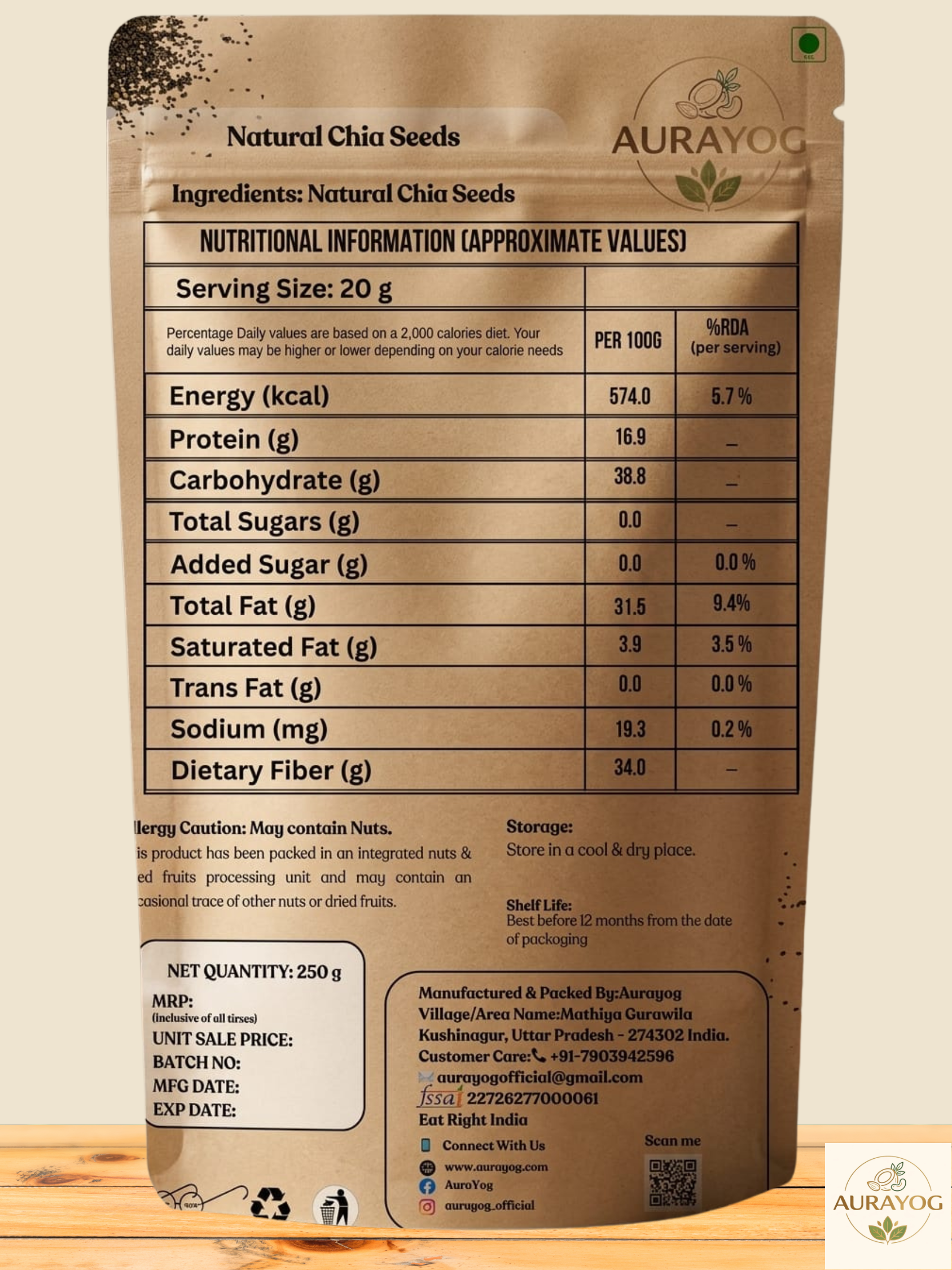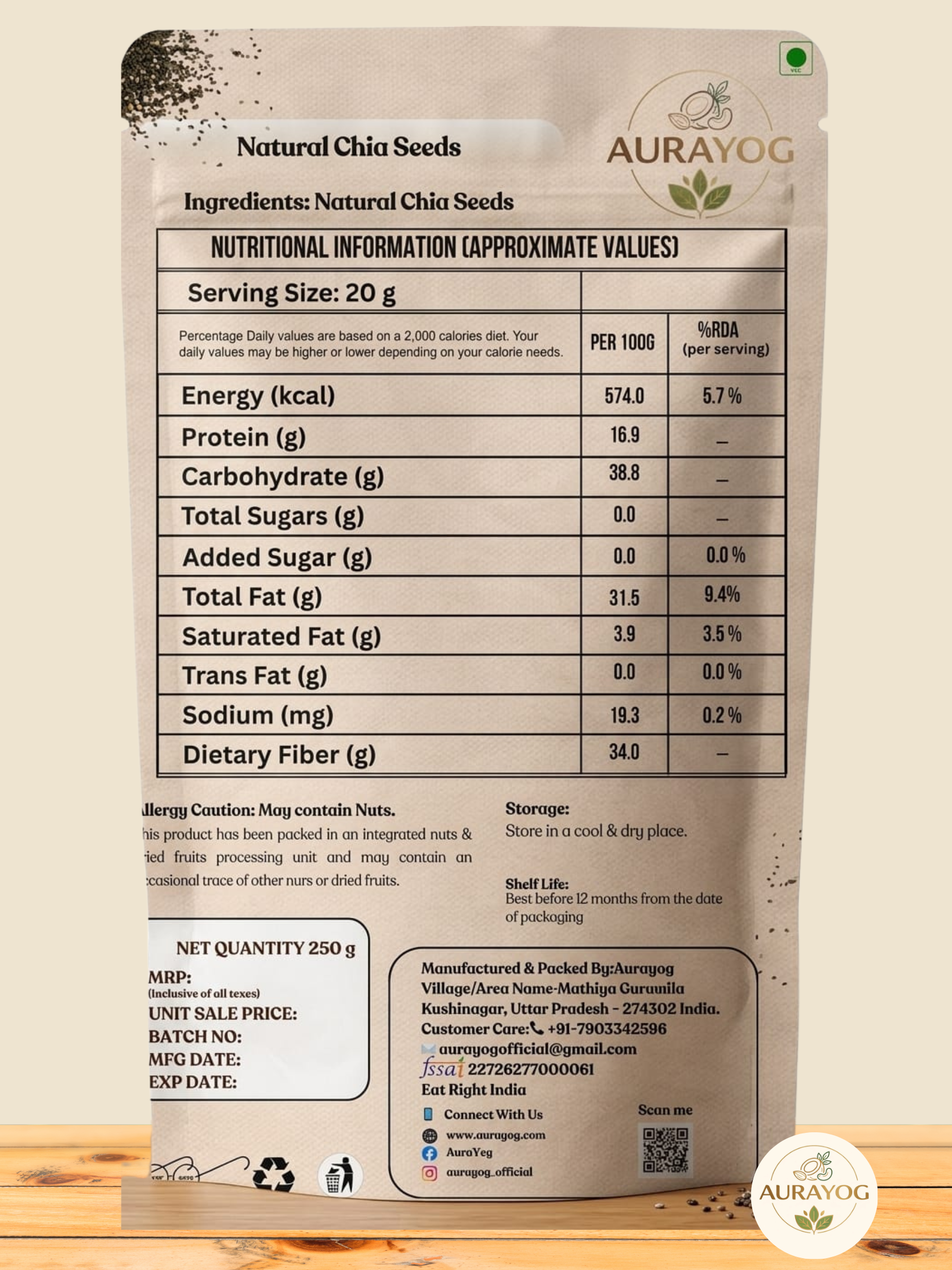 Whether you add them to water, smoothies, दूध, or sprinkle over salads and cereals, Aurayog Chia Seeds easily fit into your daily routine. When soaked, they form a gel-like texture that helps keep you full for longer — making them perfect for dieting and healthy living.