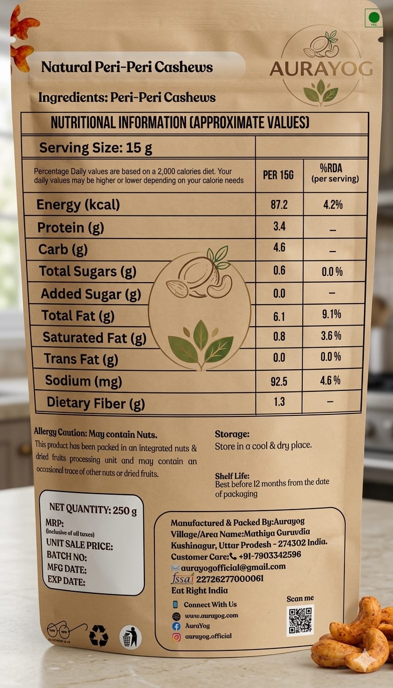 Experience the perfect blend of taste and wellness with Aurayog Real Cashews. Sourced from the finest orchards, our 100% pure and natural cashews are carefully selected to ensure you get a premium crunch in every bite. Whether you are looking for a quick midday snack or a nutritious addition to your meals, these cashews deliver “Real Nutrition” without compromise.