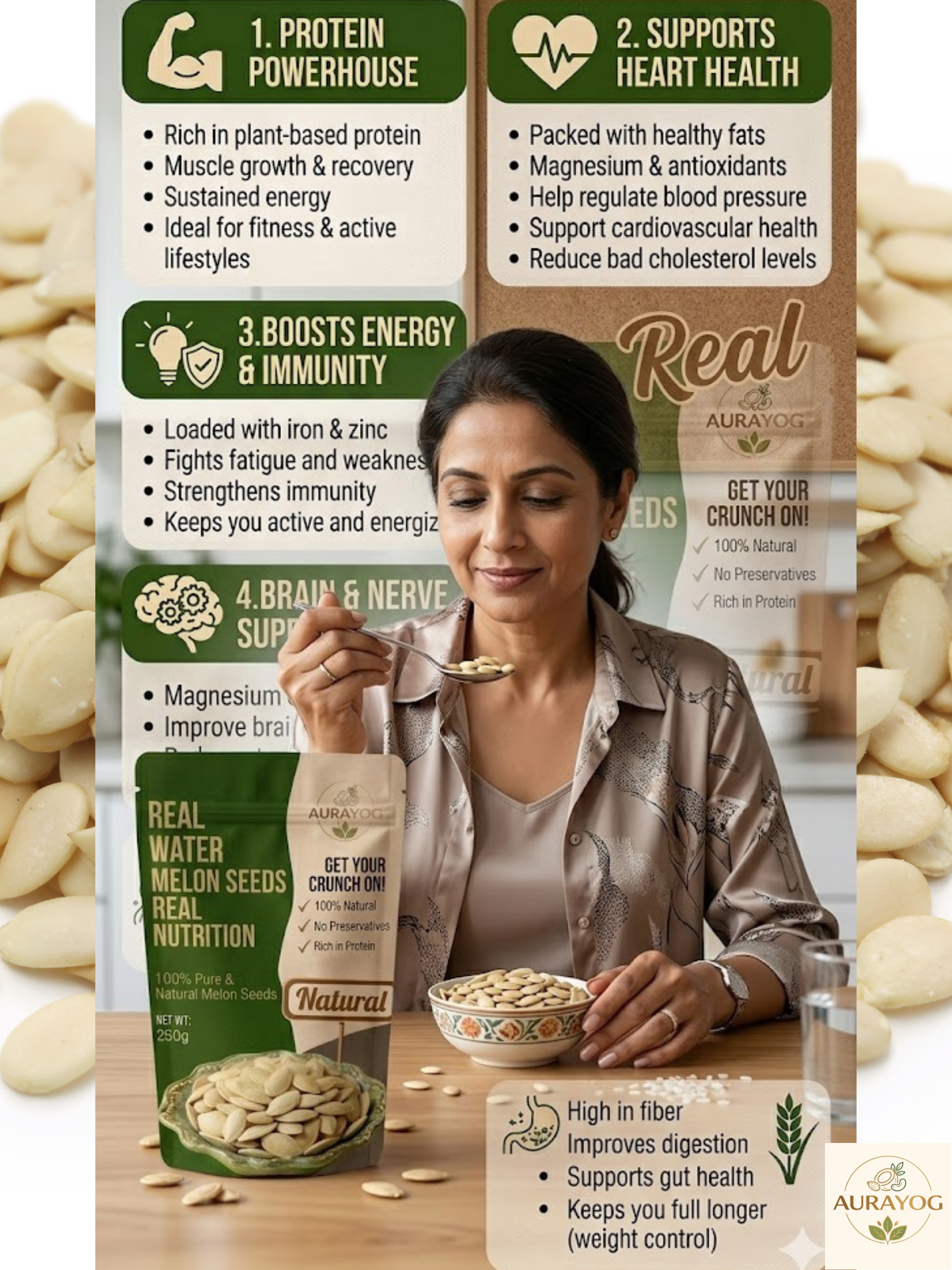Aurayog Best Watermelon Seeds for Healthy Skin, Hair & Heart