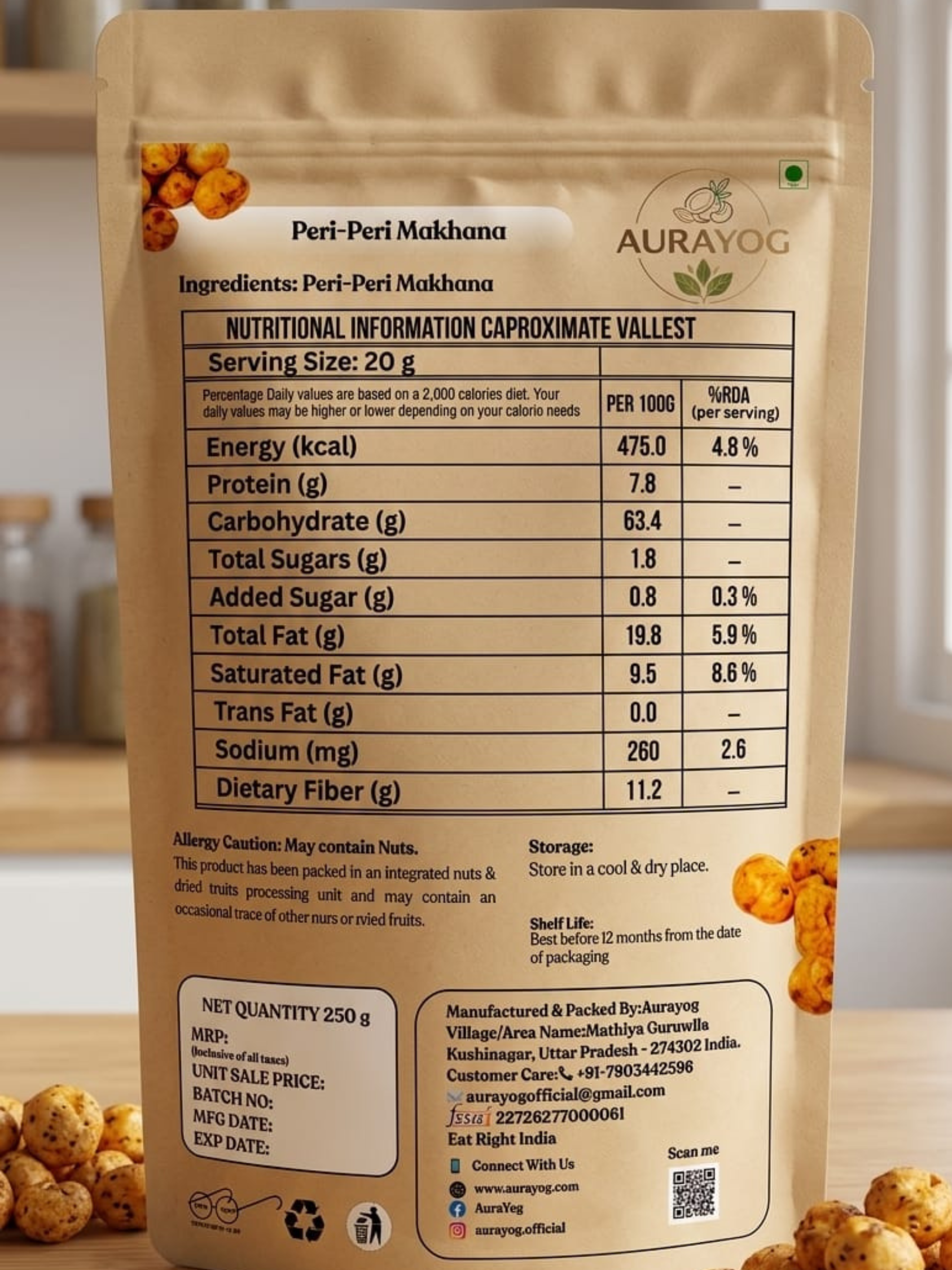 Whether you’re craving a spicy evening snack, looking for a healthier alternative to fried junk food, or need a light yet satisfying munch during work or travel — Aurayog Peri Peri Makhana is your go-to choice. It’s low in calories, high in nutrition, and perfect for guilt-free indulgence.